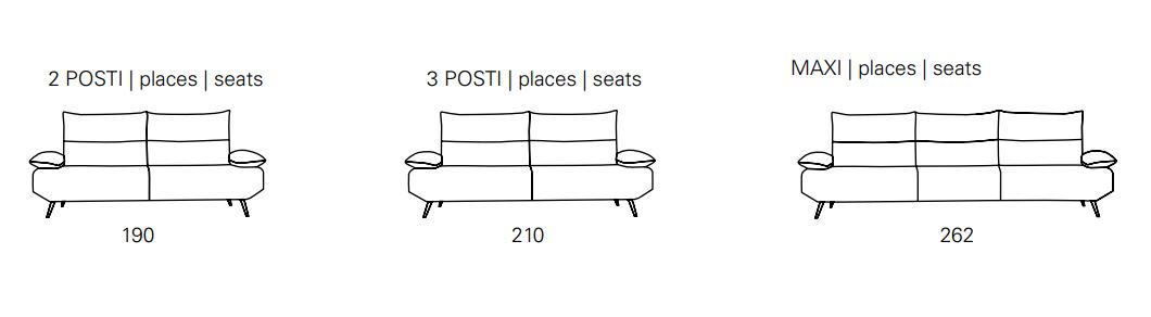 Il prezzo indicato è relativo alla composizione 3 posti l. 210 p. 104 h. 95 in tessuto categoria base