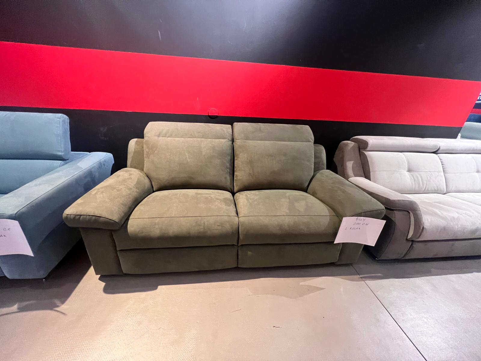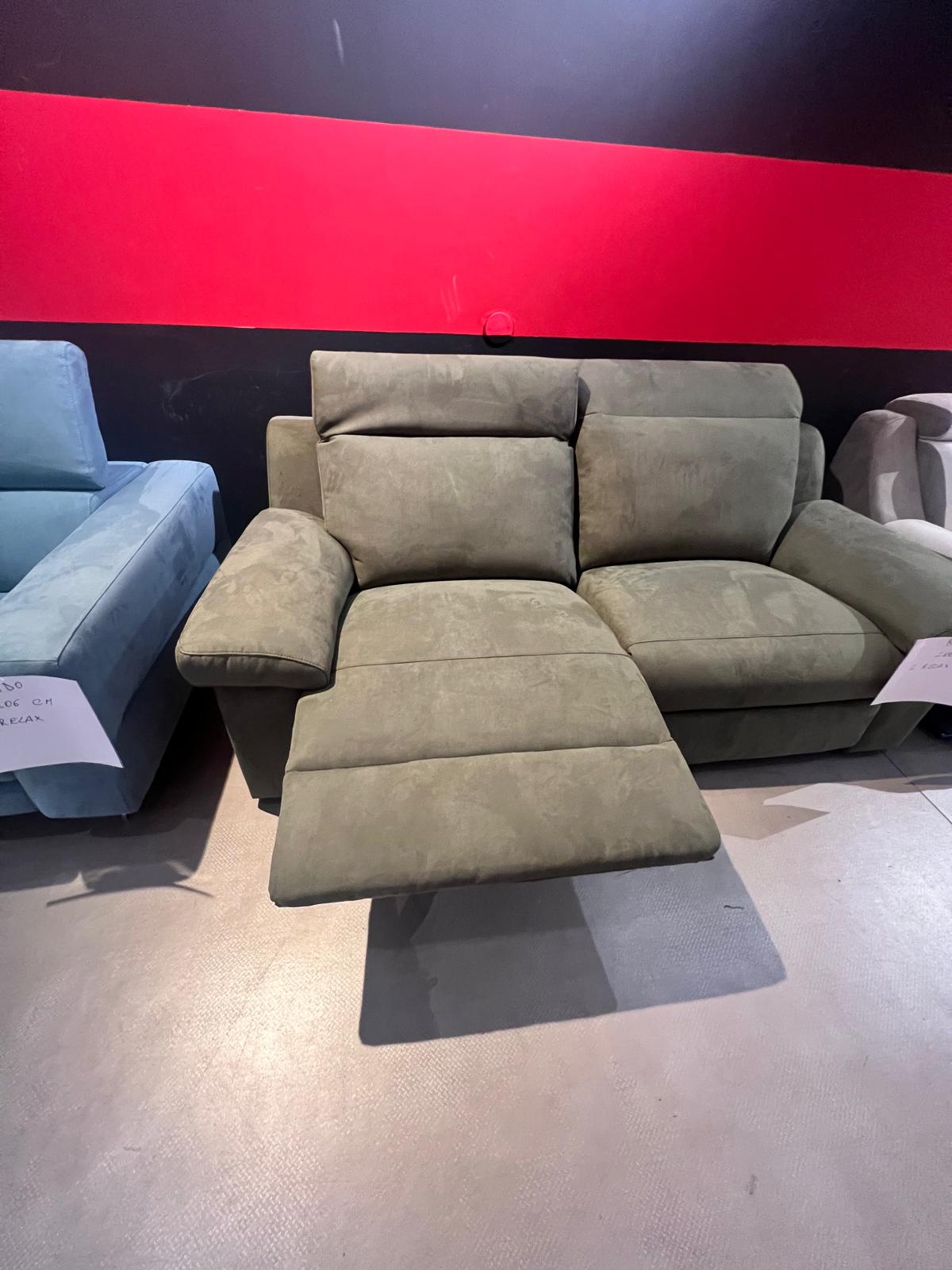 Divano 3 posti con motori elettrici e tessuto antimacchia.