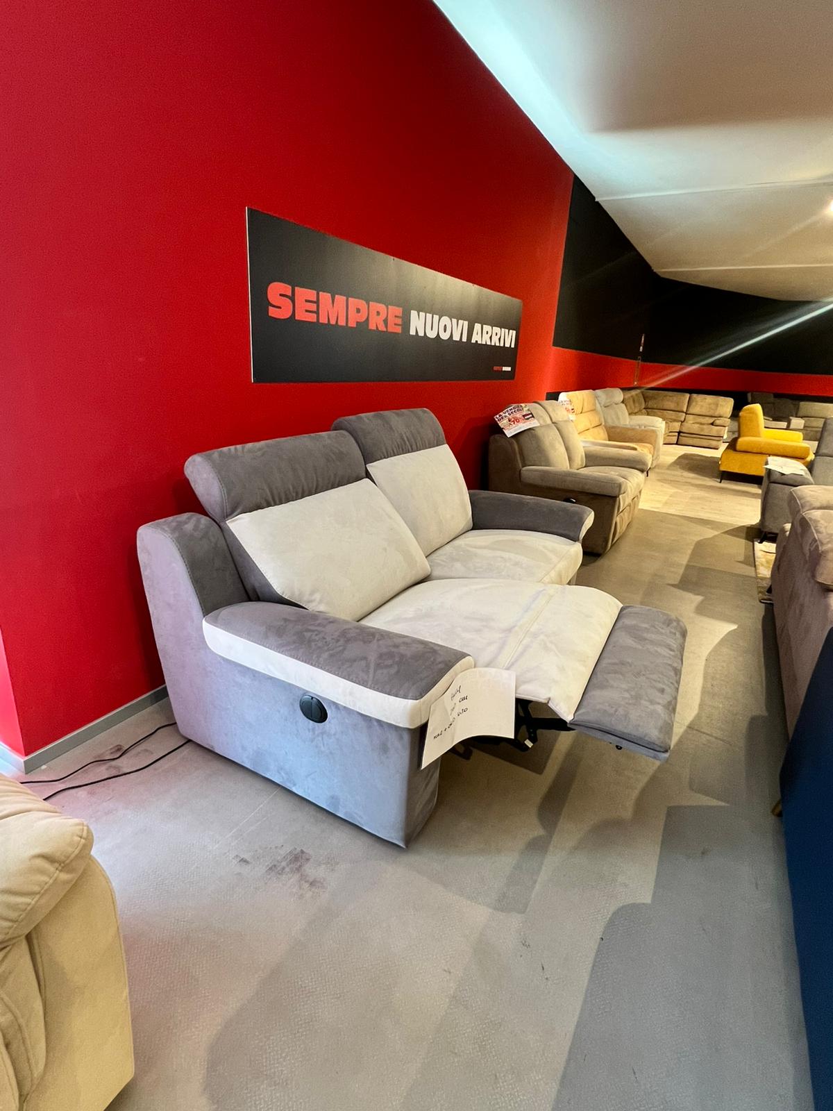 Divano 3 posti con due motori elettrici, poggiatesta regolabile. Rivestimento antimacchia bicolore Grigio.