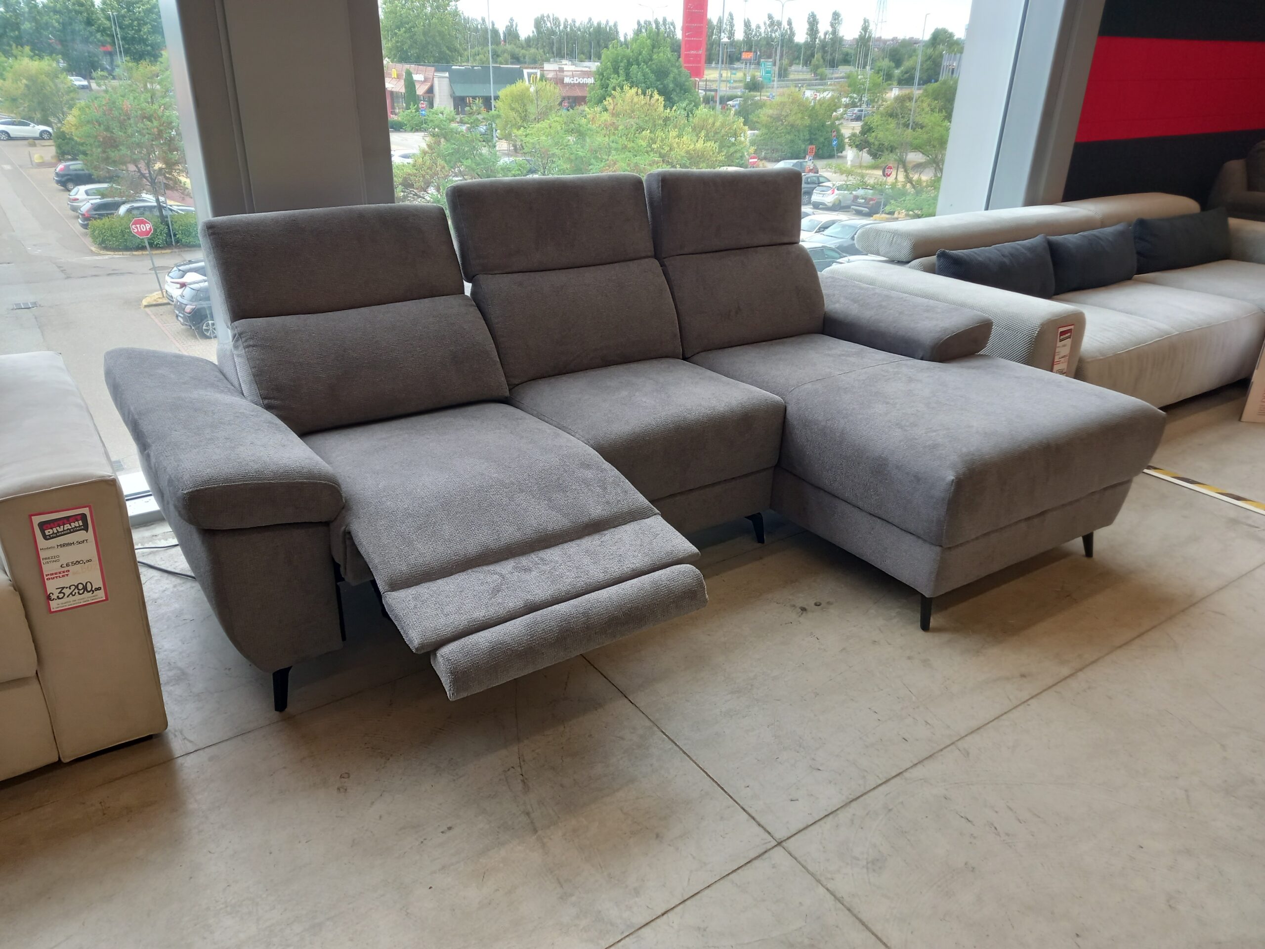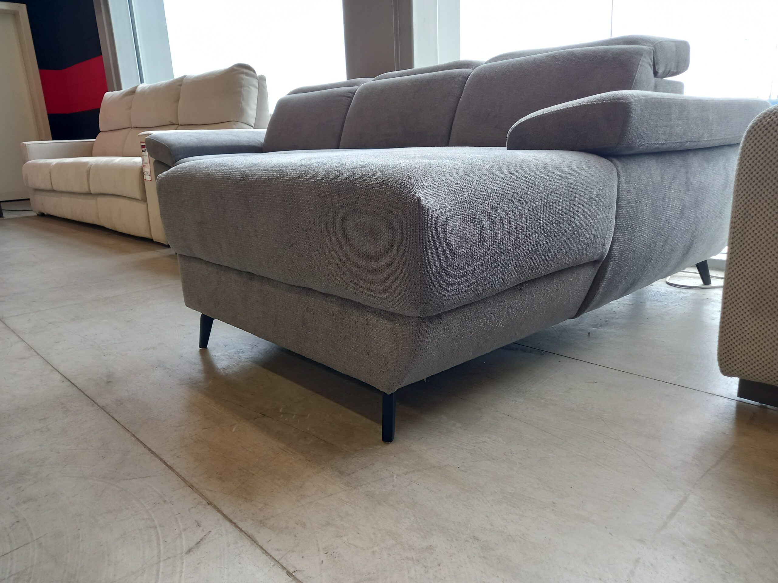 Divano 3 posti con penisola e 1 relax elettrico schienali cricchetto e piedini alti