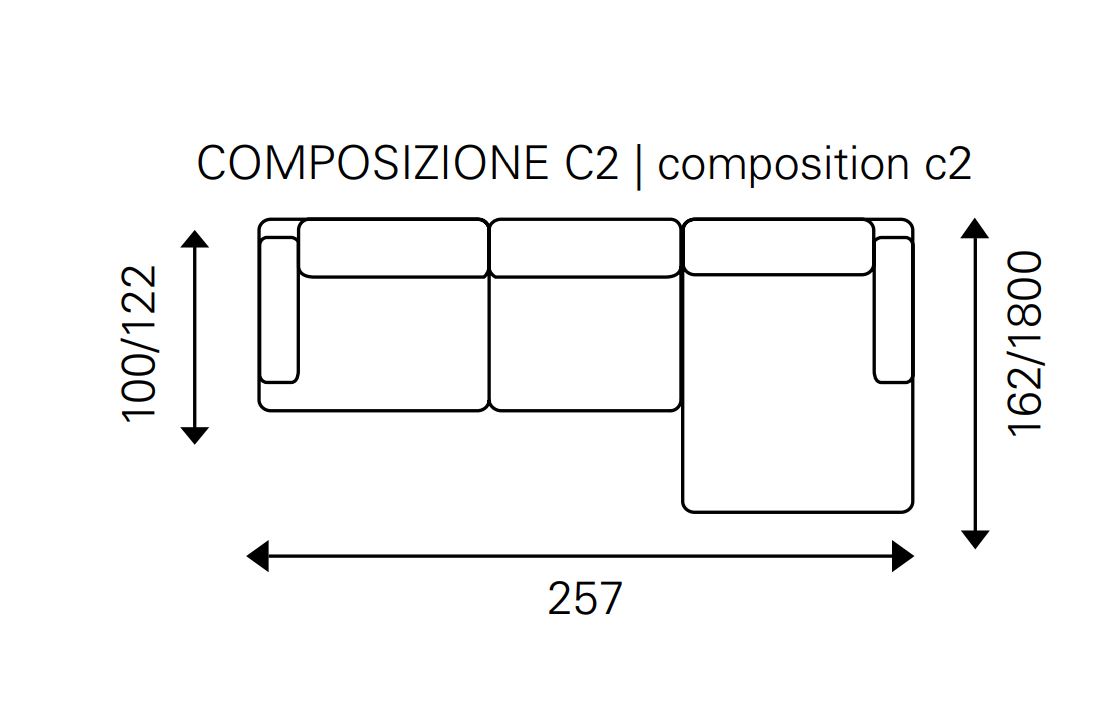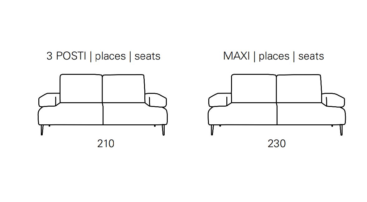 Il prezzo indicato è relativo alla composizione 3 posti l. 210 p. 100 h. 91 in tessuto categoria base