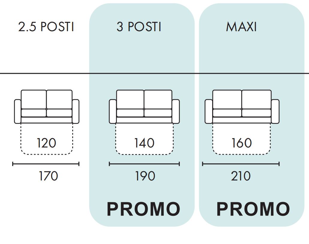 Il prezzo indicato è relativo alla composizione 3 posti materasso 140 con tessuto categoria base