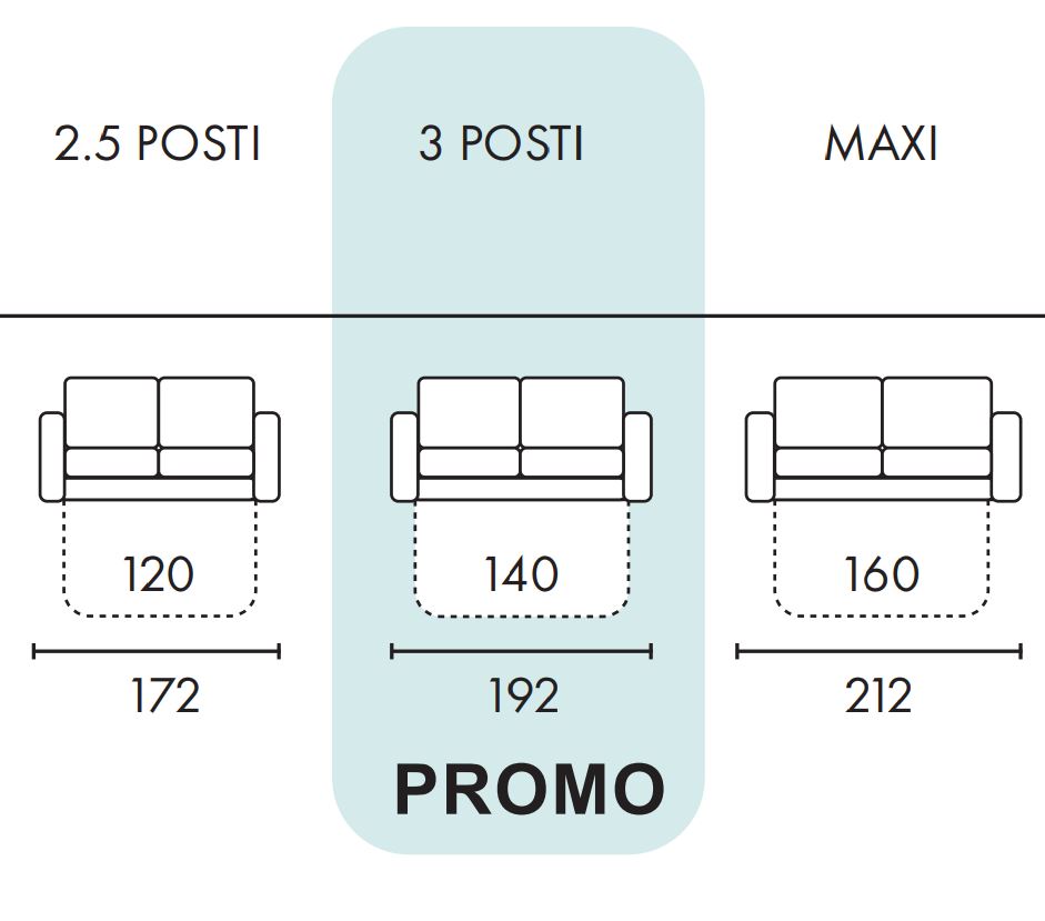 Il prezzo indicato è relativo alla composizione 3 posti materasso 140 h 17 e tessuto categoria base