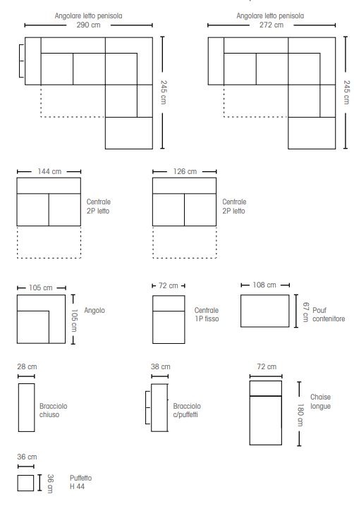 Il prezzo indicato è relativo alla composizione proposta in foto con penisola destra o sinistra e tessuto in categoria base