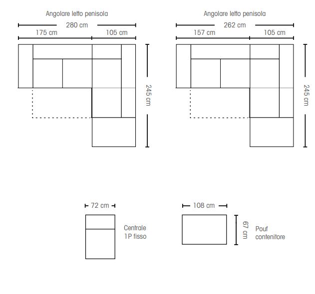 Il prezzo indicato è relativo alla composizione proposta in foto con penisola destra o sinistra e con tessuto categoria base