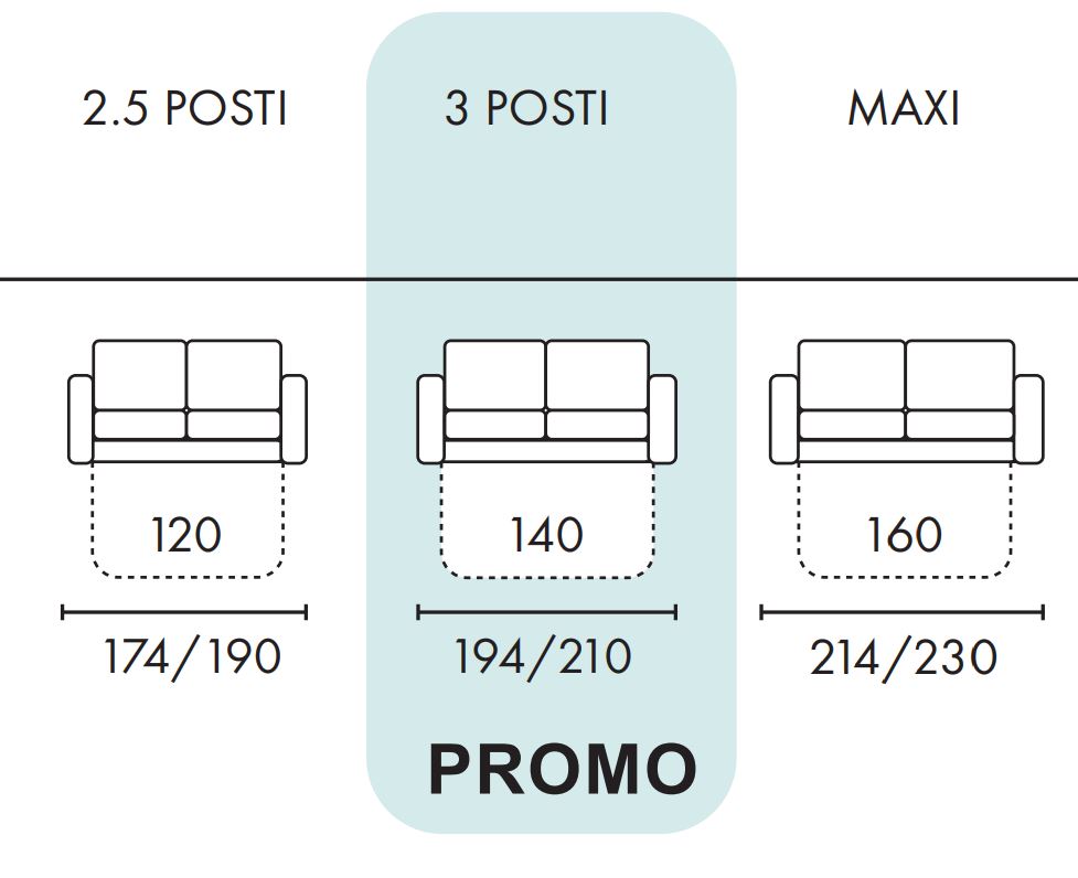Il prezzo indicato è relativo alla composizione 3 posti materasso 140 con tessuto categoria base