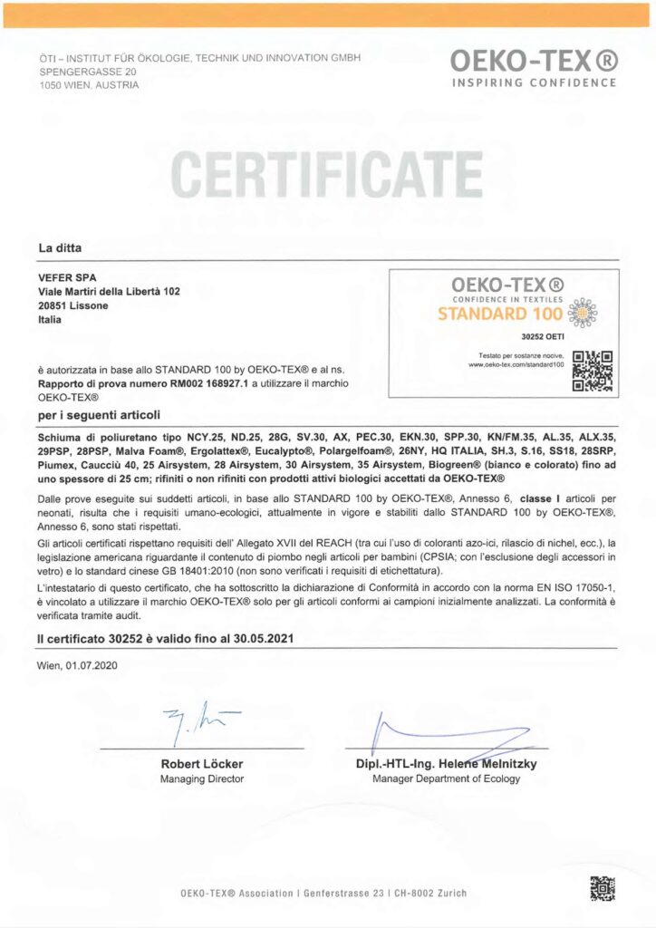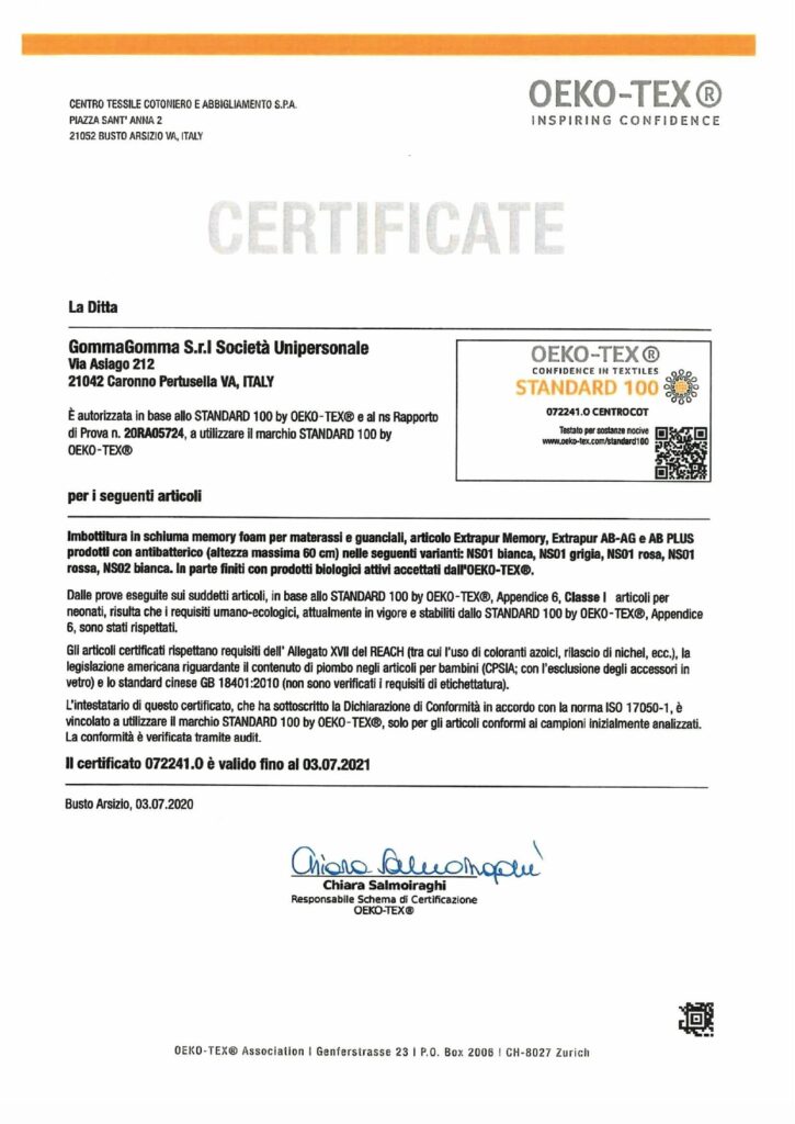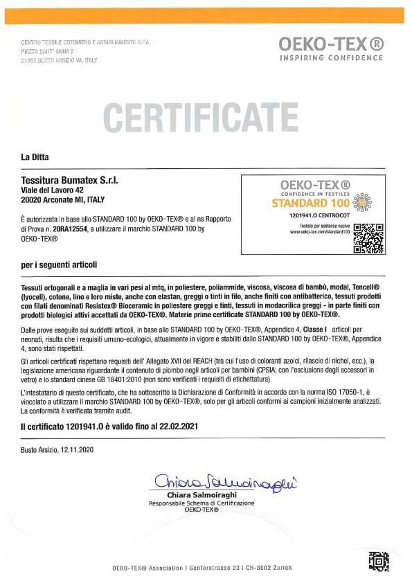 ECCO LE NOSTRE CERTIFICAZIONI STANDARD 100 BY OEKO-TEX