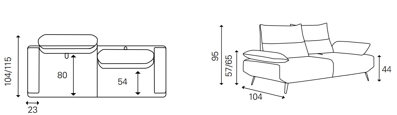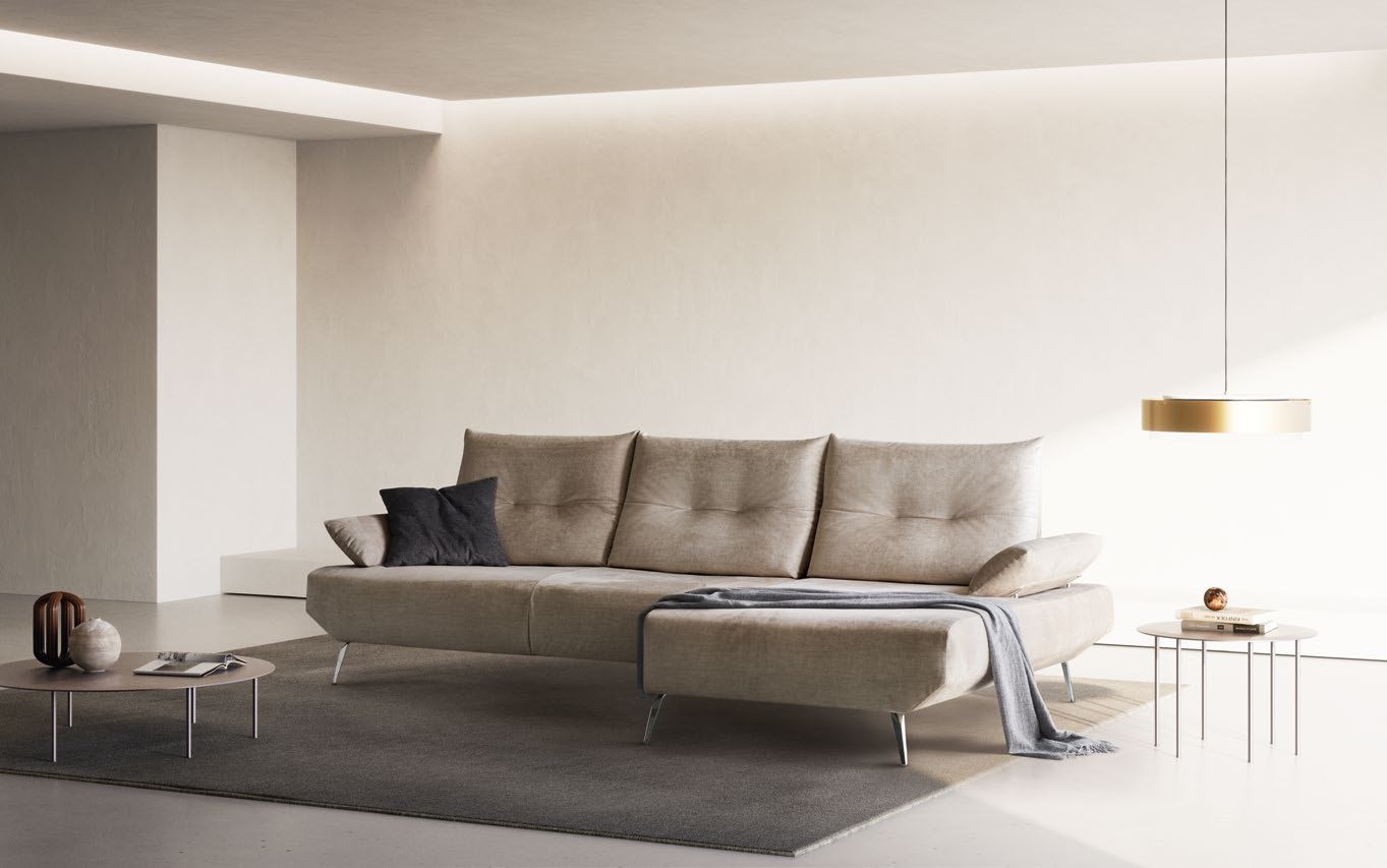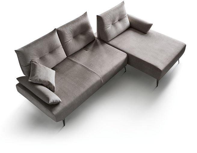 Design esclusivo per un divano contemporaneo che esalta il comfort grazie ai movimenti di schienali e braccioli, che consentono diverse opzioni di relax.