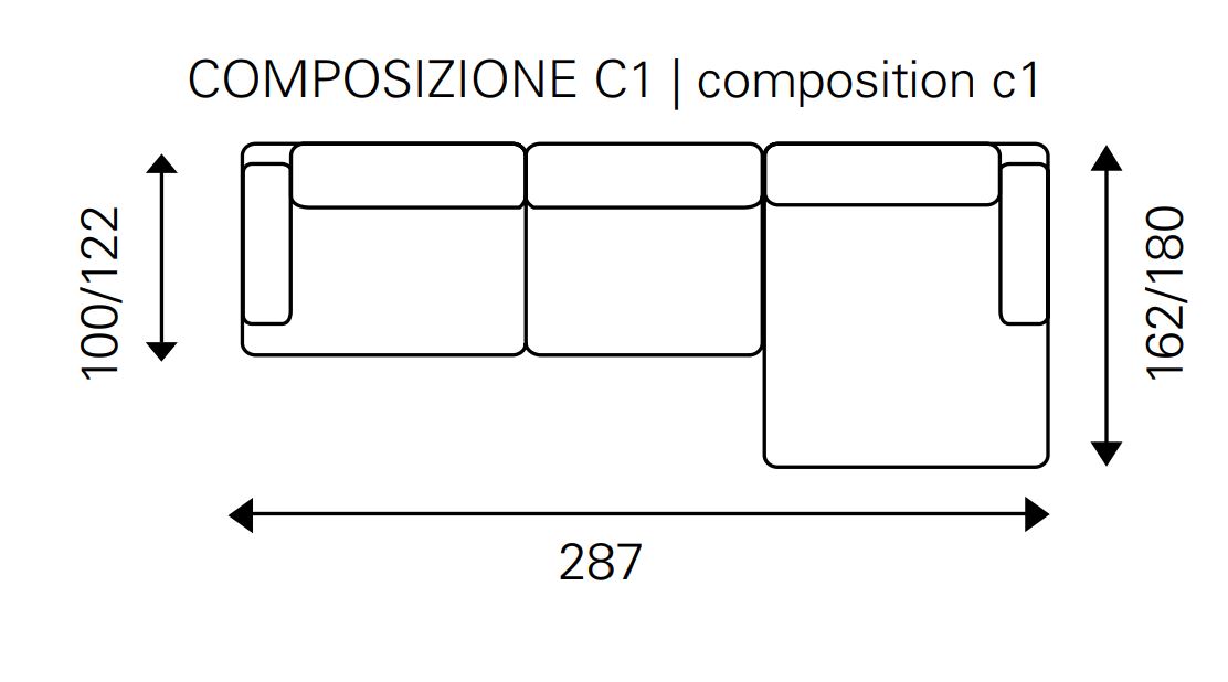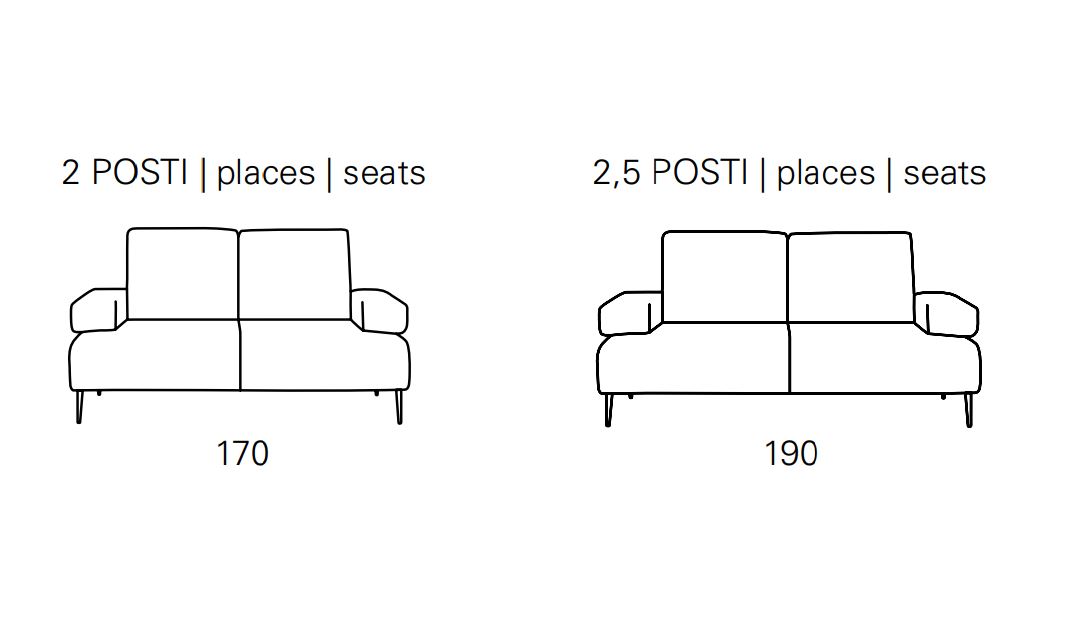 Il prezzo indicato è relativo alla composizione 3 posti l. 210 p. 100 h. 91 in tessuto categoria base
